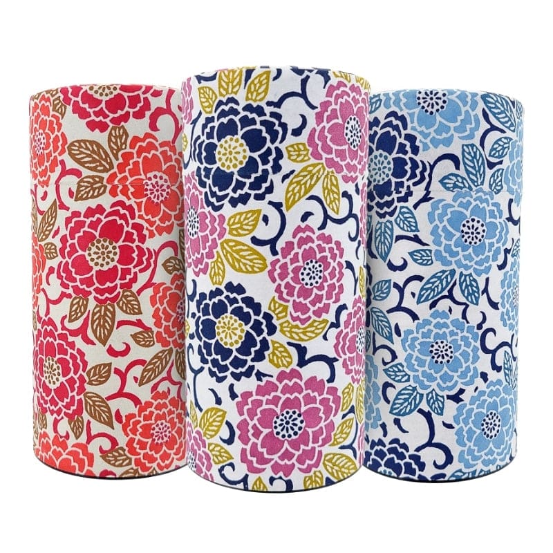 Washipapperet på den här teburken är dekorerat med arabesker och krysantemum. Krysantemum – kiku på japanska – är ett emblem för den kejserliga familjen och en symbol för lång livslängd och föryngring. Arabeskerna representerar tillväxten av en växt, en symbol för välstånd.